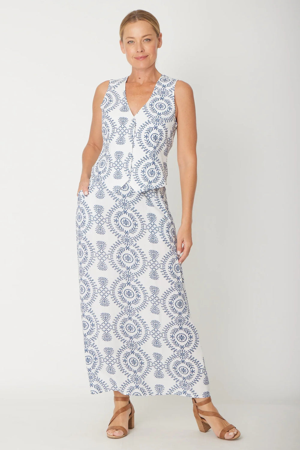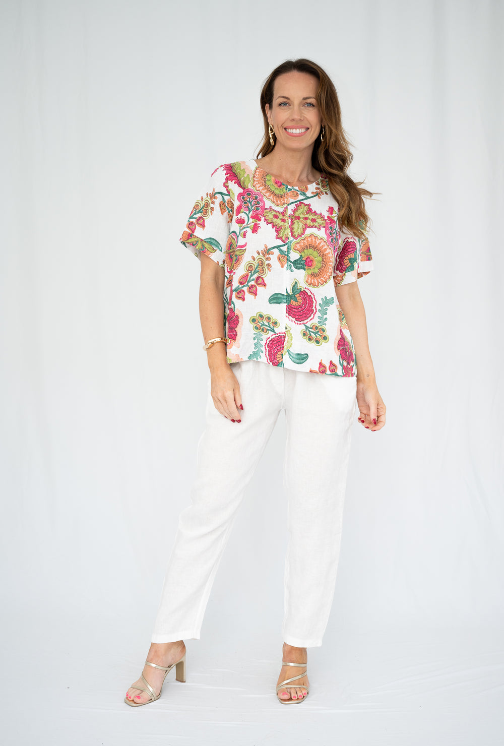 Lucia Italian Print Linen Top