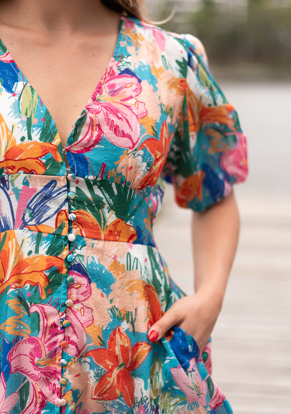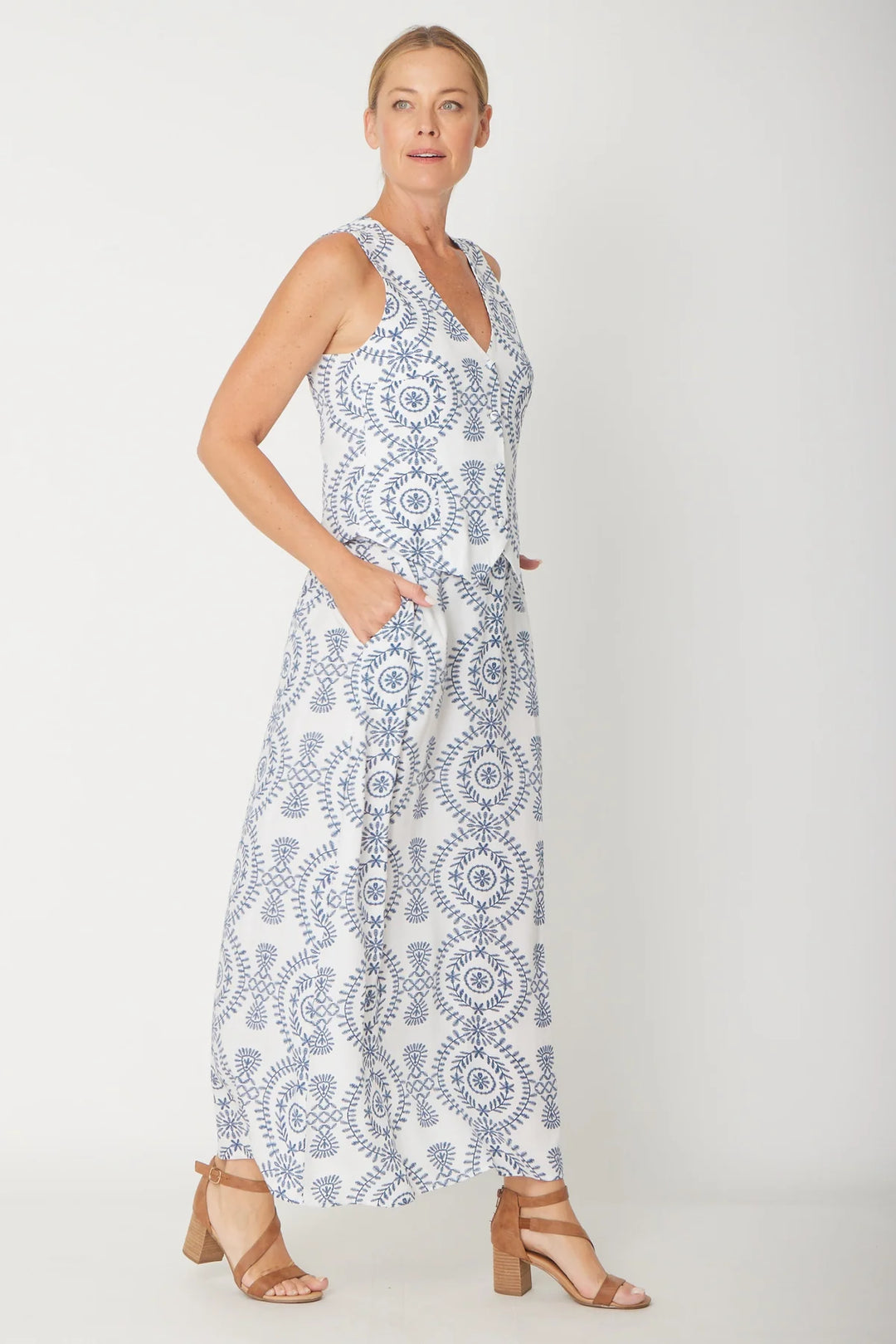 Sydney Button Dress Blue Swirl