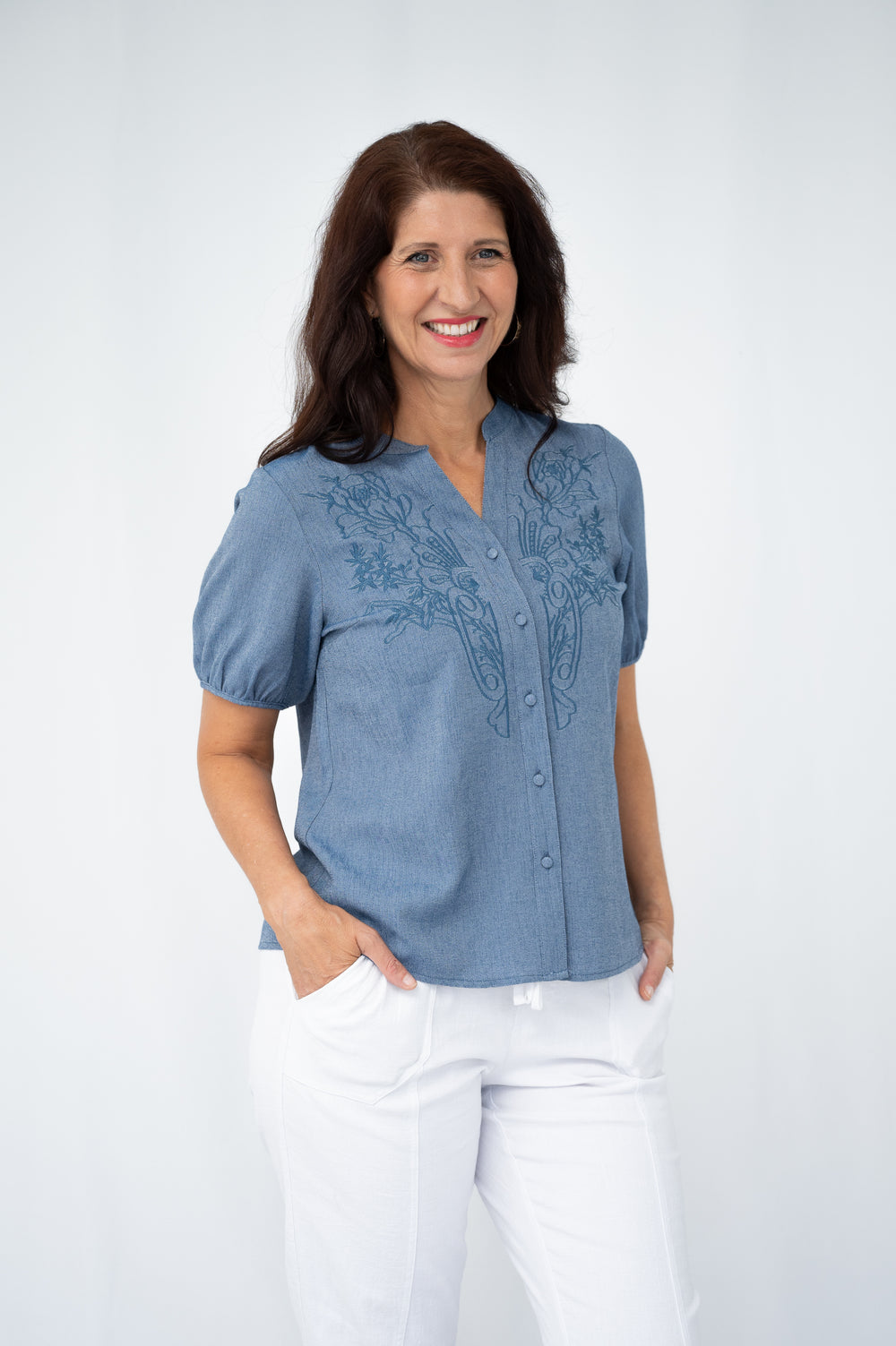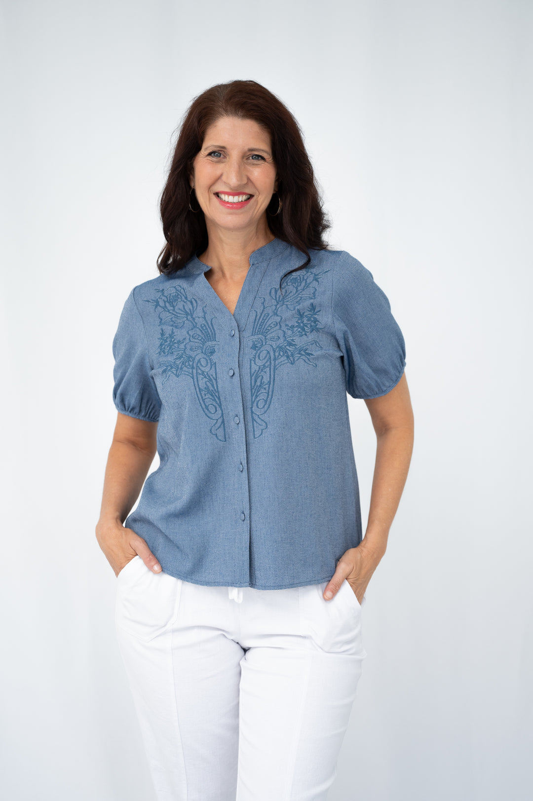 Maribel Blue Embroidered Top