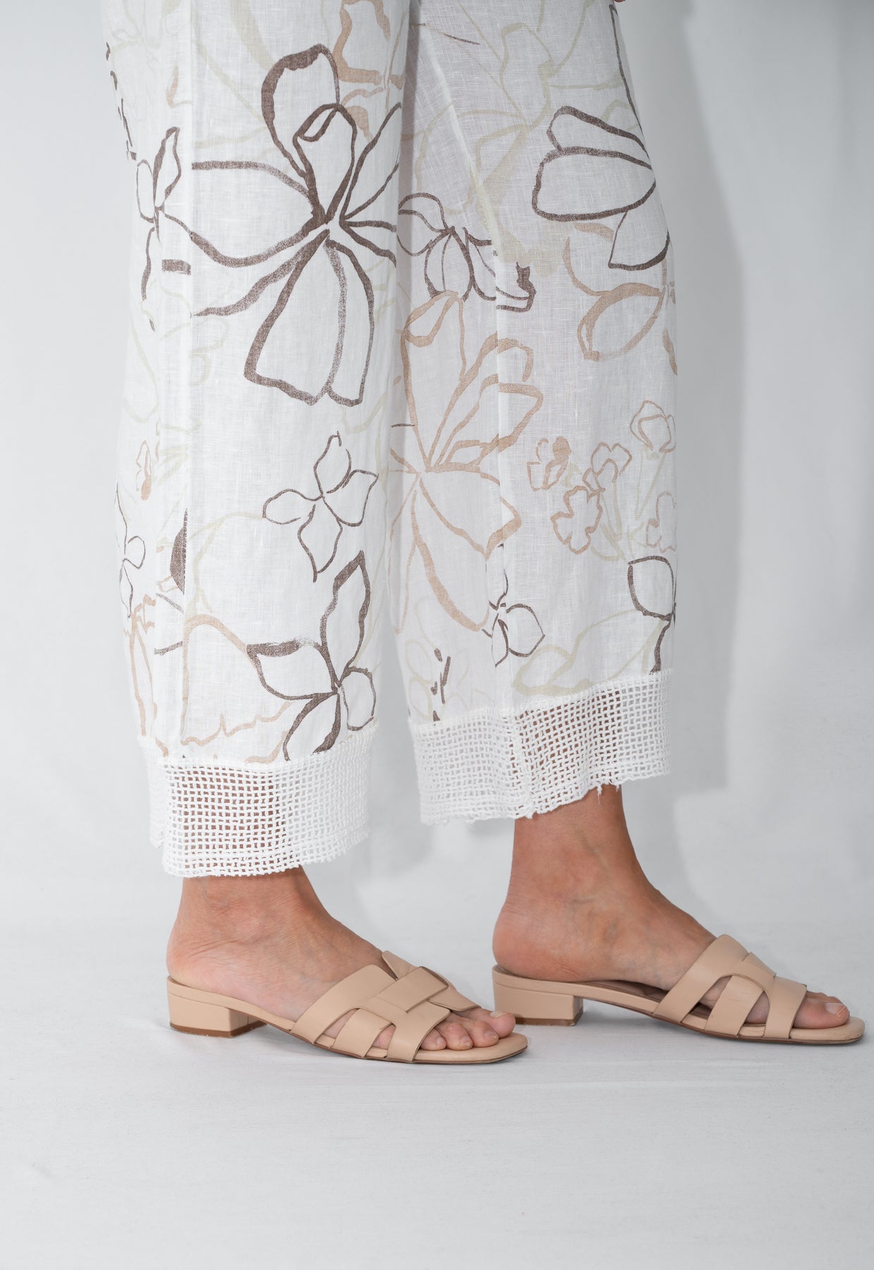 Timeless tailoring meets artisanal detail. Crafted in premium Italian linen with an exclusive floral sketch print, this wide-leg style features an elasticated waistband for comfort, side pockets, and a delicate crochet hem. Pair with the Stone Flower Tank for the full set or style simply with a crisp white shirt.