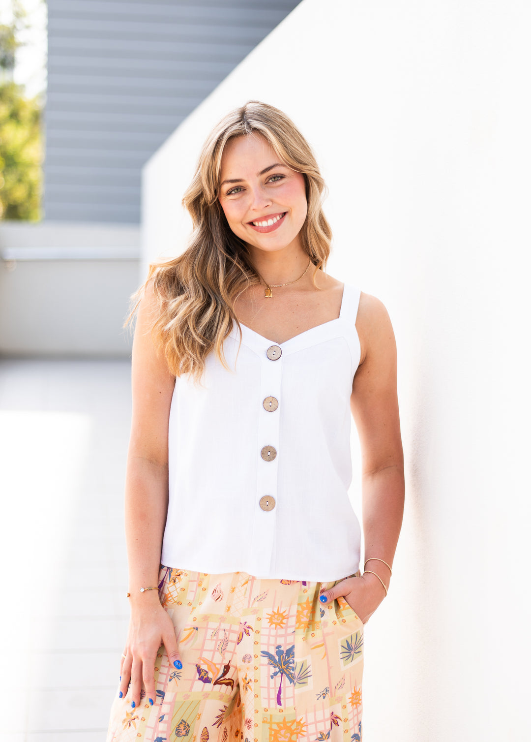 Big Button Tank White