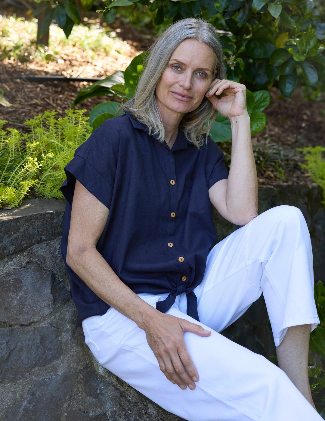 Teneriffe Sleeveless Shirt - Ink Blue